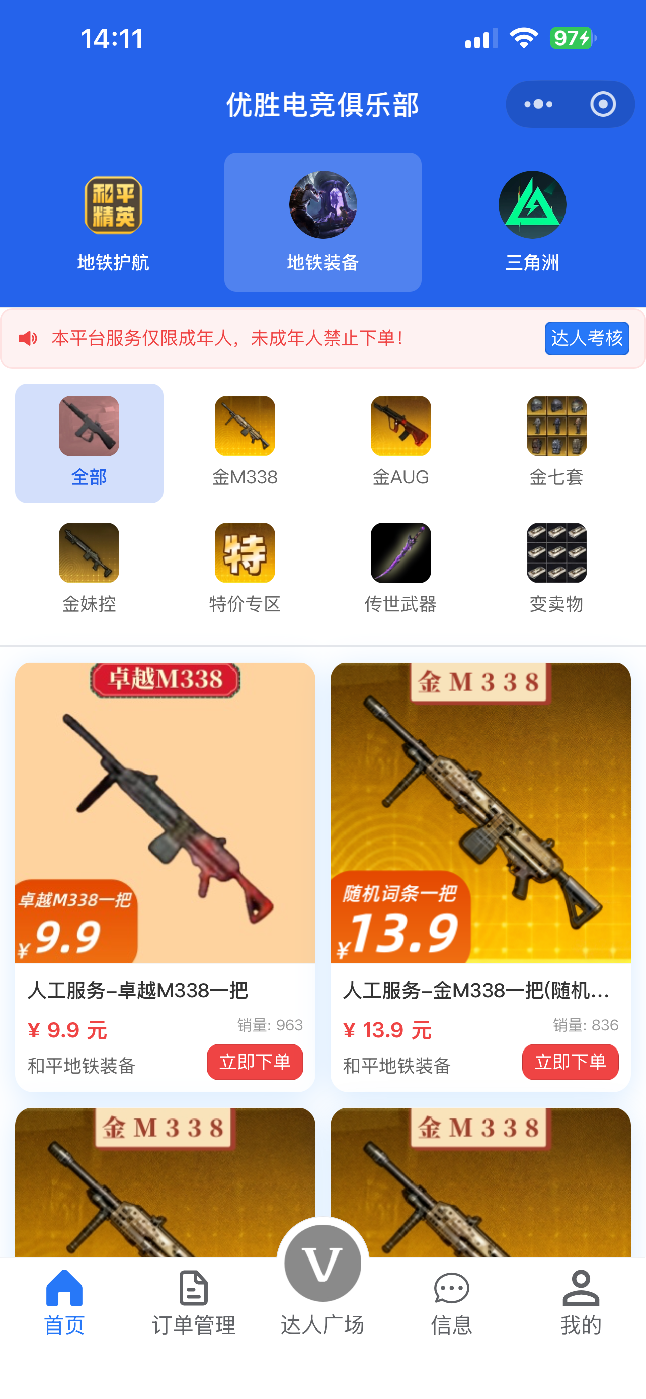 优胜电竞在资源储备方面表现的十分突出,特别是针对地铁逃生的模式,上架了大量的装备,并且涵盖了高战力满配装备,价格都是明码标价的,不必担心漫天要价的情况发生,如果在交易中出现了恶意和虚假的欺骗行为,可以直接跟客服投诉举报。
